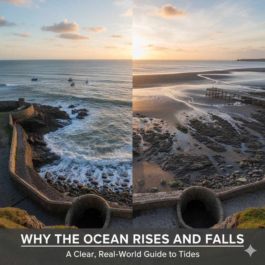 Tides aren’t random—your coastline is moving through huge “bulges” of ocean water created by the Moon’s gravity (and helped by the...