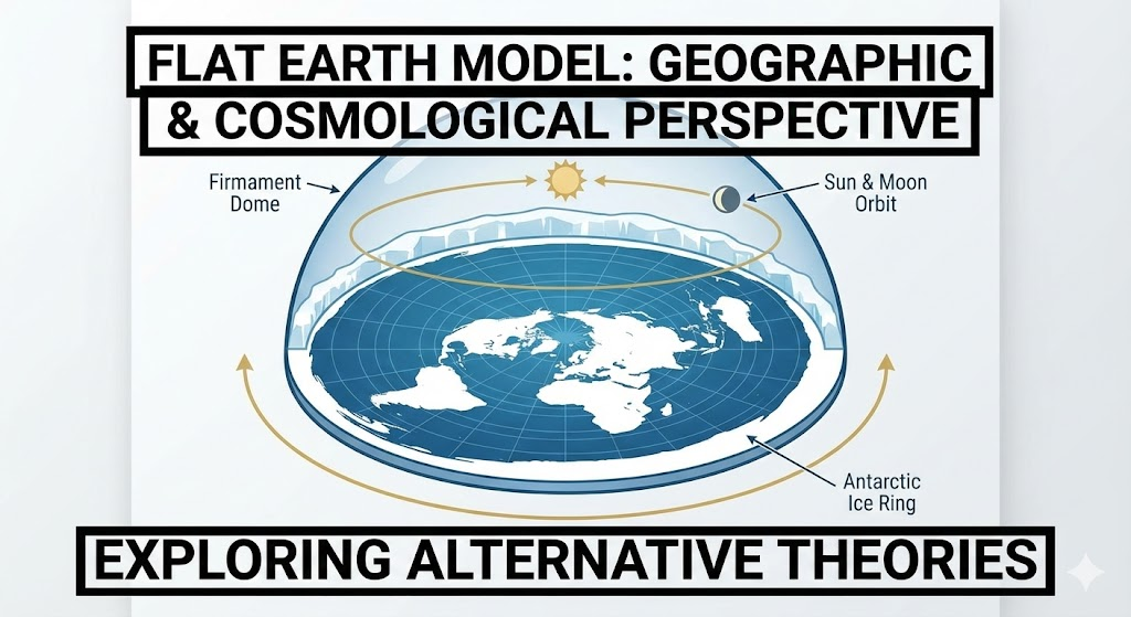 Explore the Flat Earth model from a geographic and cosmological perspective. Learn how the firmament dome, ice ring, and alternative theories...